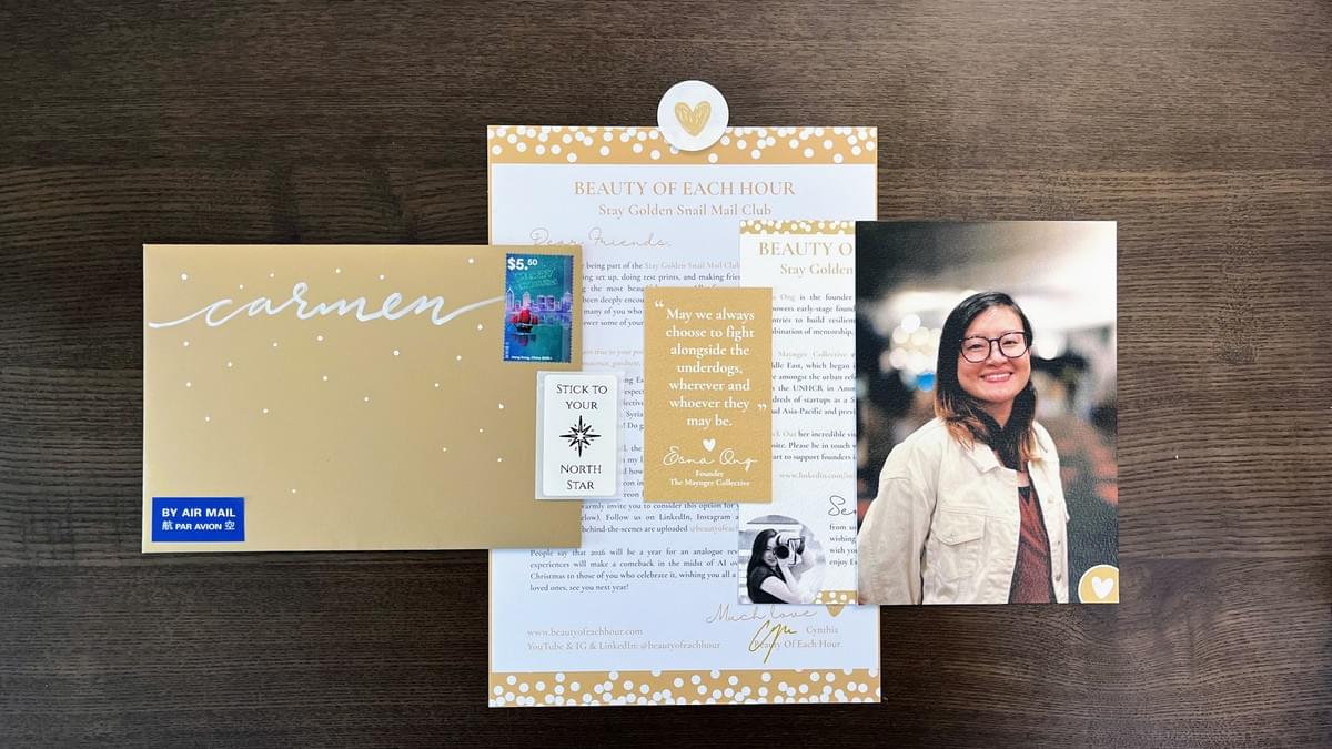Receive the monthly Stay Golden Snail Mail in the post, which includes: